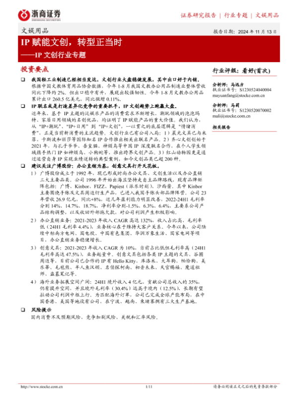 【浙商证券】【20241113】IP文创行业专题:IP赋能文创,转型正当时-11页