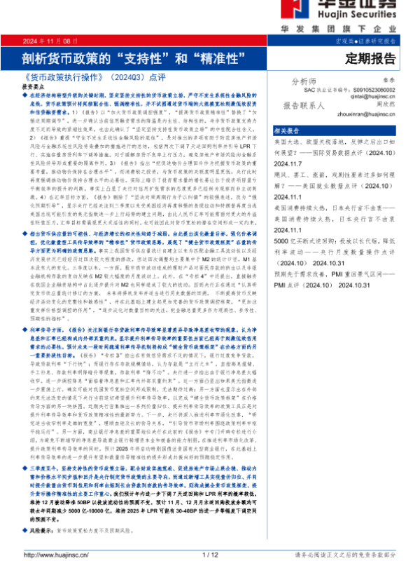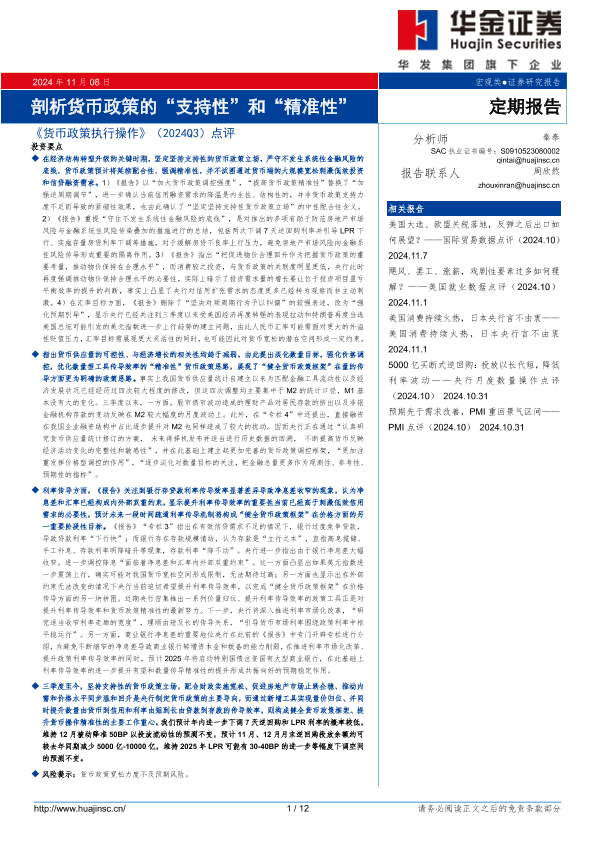 【华金证券】【20241108】《货币政策执行操作》(2024Q3)点评:剖析货币政策的“支持性”和“精准性”-12页