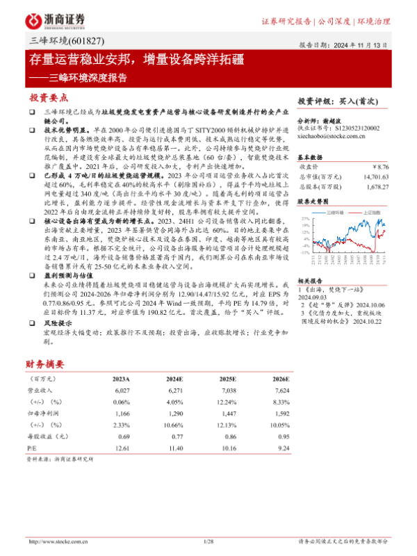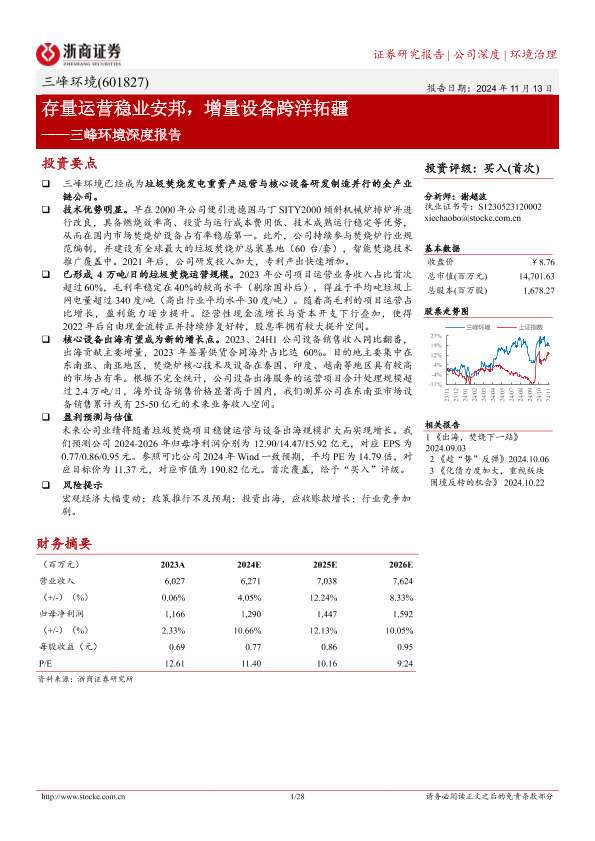 【浙商证券】【20241113】三峰环境(601827)深度报告:存量运营稳业安邦,增量设备跨洋拓疆-28页