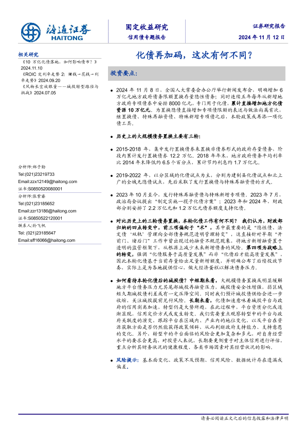 【海通证券】【20241112】信用债专题报告:化债再加码,这次有何不同?-13页