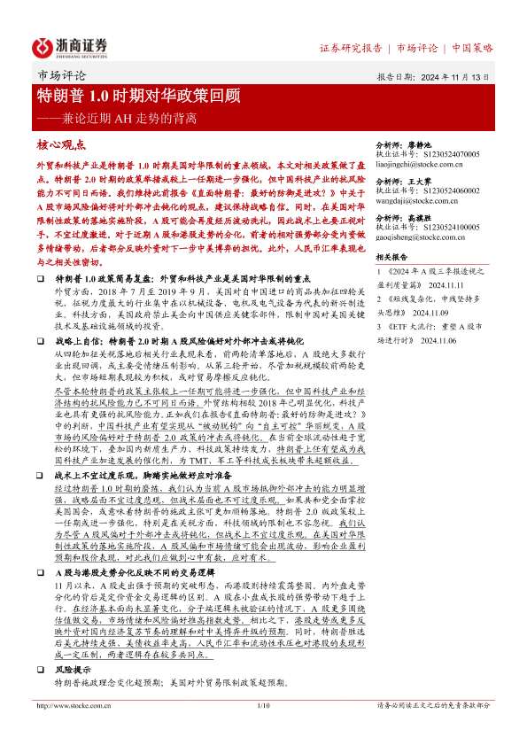 【浙商证券】【20241113】兼论近期AH走势的背离:特朗普1.0时期对华政策回顾-10页
