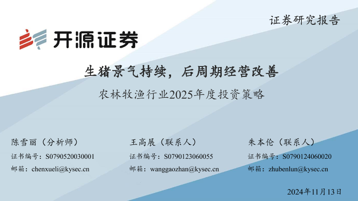 【开源证券】【20241113】农林牧渔行业2025年度投资策略:生猪景气持续,后周期经营改善-82页