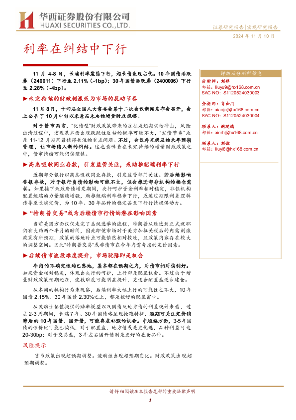 【华西证券】【20241110】利率在纠结中下行-22页