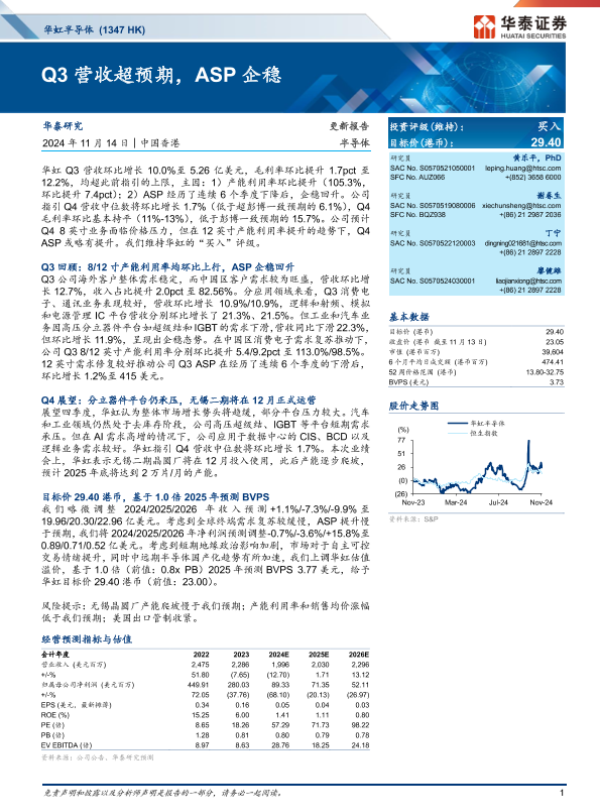 【华泰证券】【20241114】华虹半导体(1347.HK)Q3营收超预期,ASP企稳-14页
