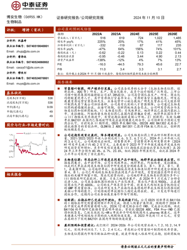 【中泰证券】【20241110】博安生物(6955.HK)仿创结合大分子新锐,盈利能力%2b创新实力快速提升-21页