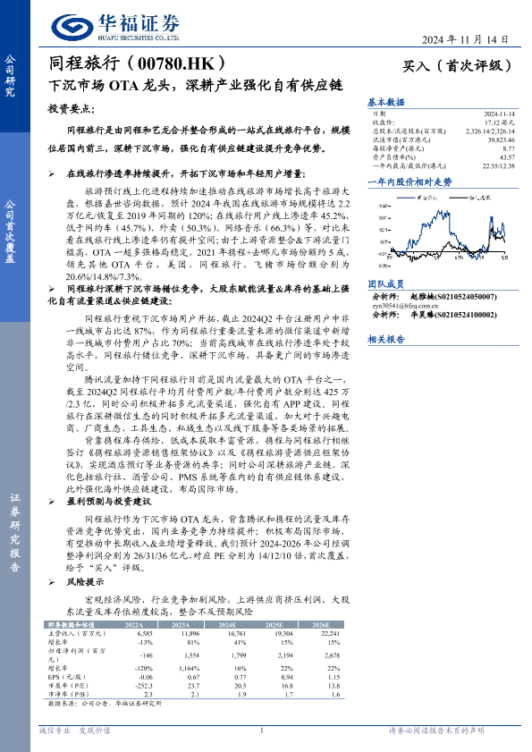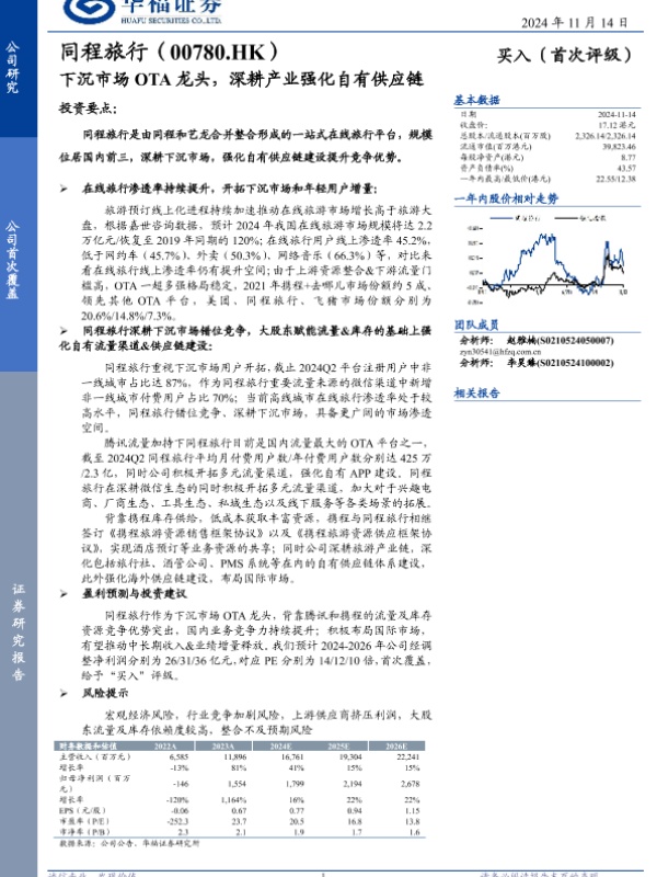 【华福证券】【20241114】同程旅行(00780.HK)下沉市场OTA龙头,深耕产业强化自有供应链-25页