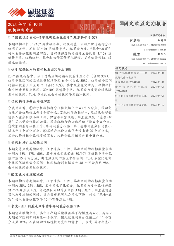 【国投证券】【20241110】固定收益定期报告:机构杠杆升温-10页