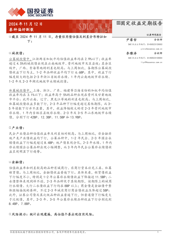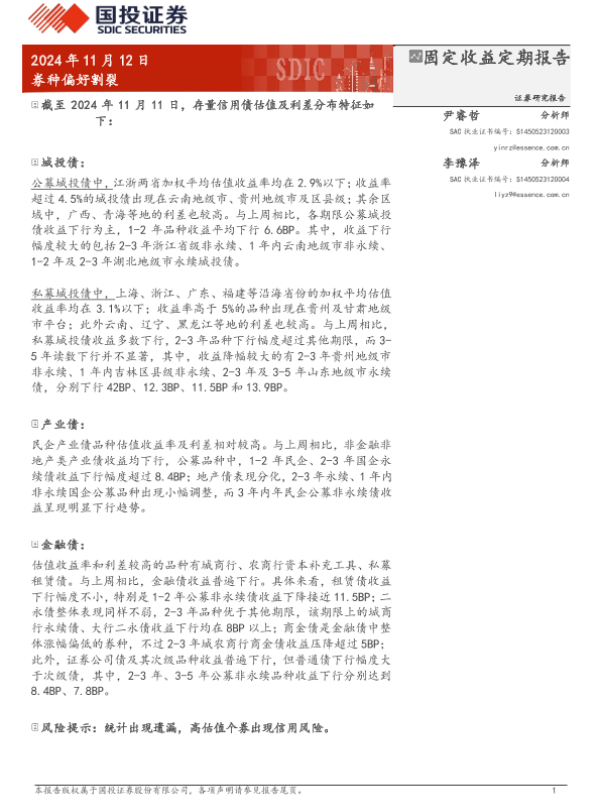 【国投证券】【20241112】固定收益定期报告:券种偏好割裂-19页