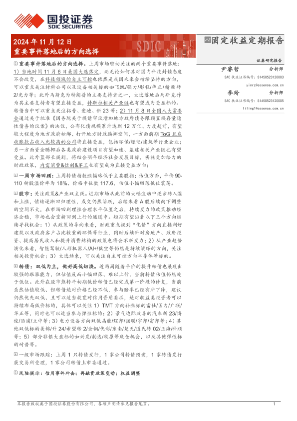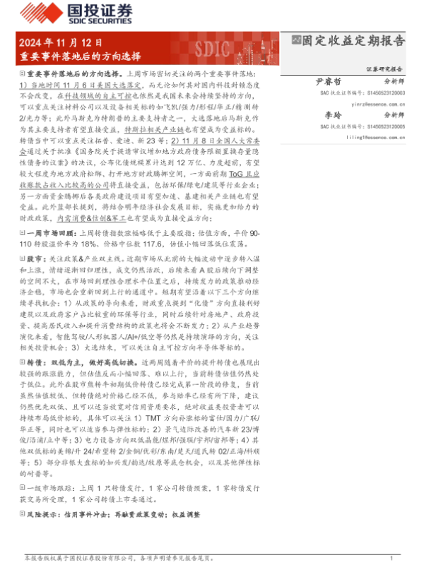 【国投证券】【20241112】固定收益定期报告:重要事件落地后的方向选择-14页