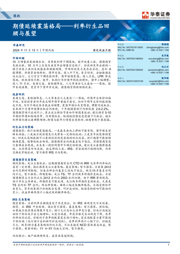 【华泰证券】【20241113】固定收益月报:利率衍生品回顾与展望,期债延续震荡格局-19页