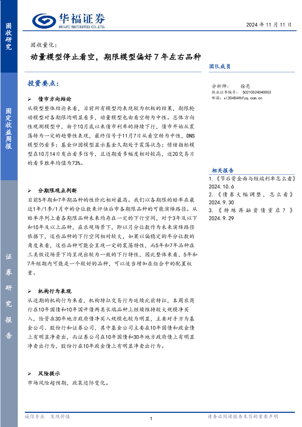 【华福证券】【20241111】固收量化:动量模型停止看空,期限模型偏好7年左右品种-16页