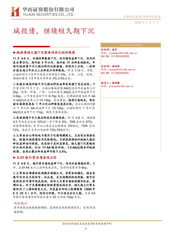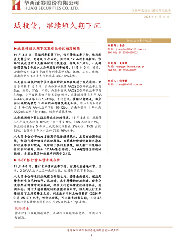 【华西证券】【20241111】城投债,继续短久期下沉-16页