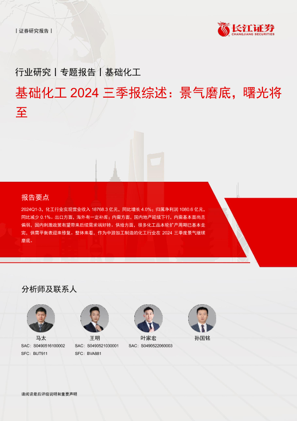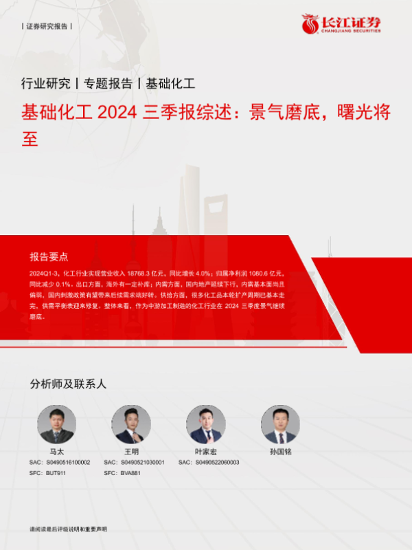 【长江证券】【20241111】基础化工行业2024三季报综述:景气磨底,曙光将至-24页