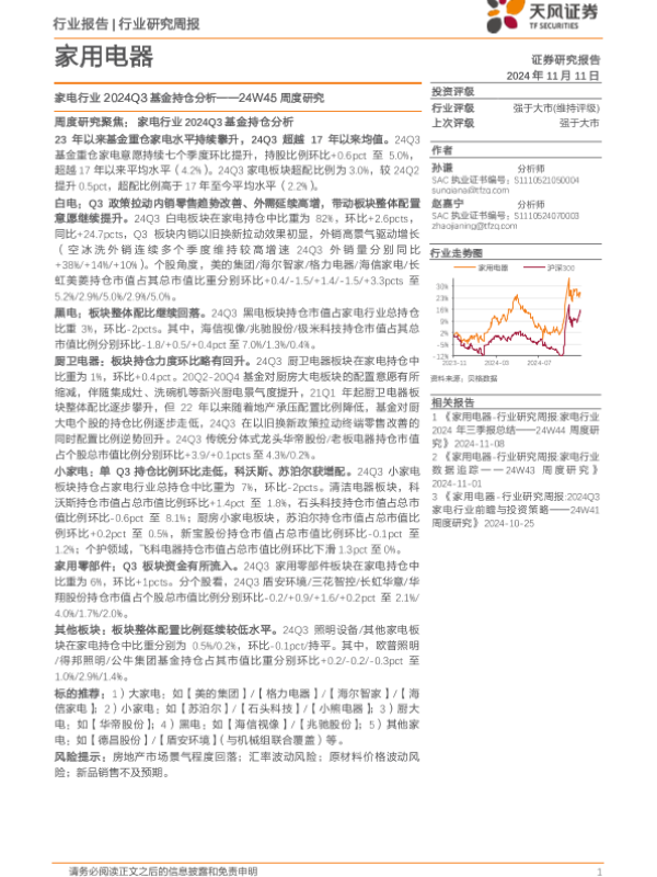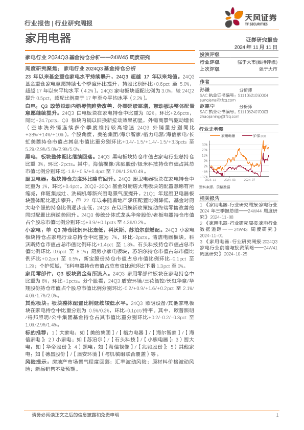 【天风证券】【20241111】家用电器行业24W45周度研究:家电行业2024Q3基金持仓分析-16页