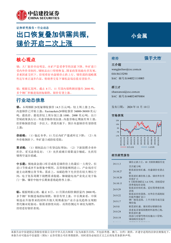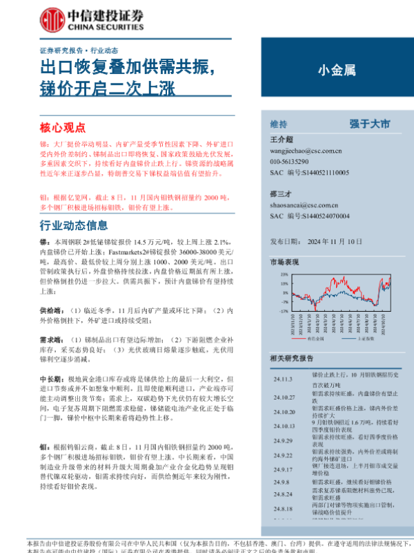 【中信建投证券】【20241110】小金属行业:出口恢复叠加供需共振,锑价开启二次上涨-10页