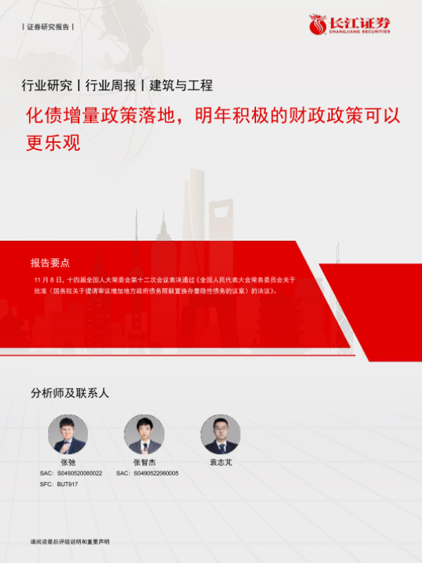 【长江证券】【20241110】建筑与工程行业:化债增量政策落地,明年积极的财政政策可以更乐观-18页