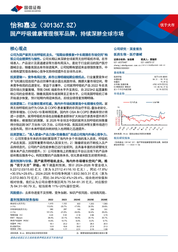 【国信证券】【20241112】怡和嘉业(301367)国产呼吸健康管理领军品牌,持续深耕全球市场-49页