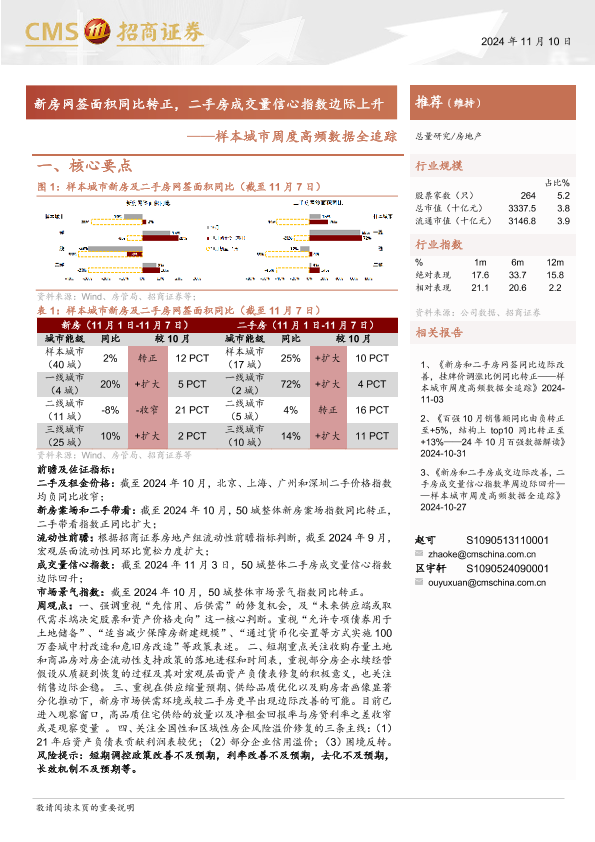 【海通证券】【20241110】房地产行业样本城市周度高频数据全追踪:新房网签面积同比转正,二手房成交量信心指数边际上升-12页