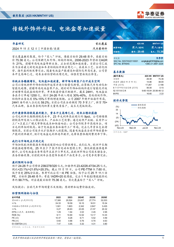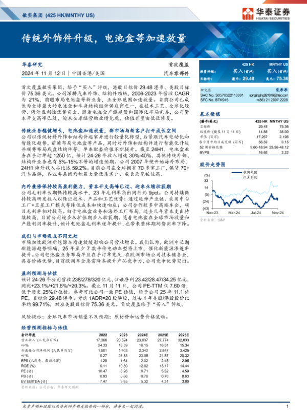 【华泰证券】【20241112】敏实集团(0425.HK)传统外饰件升级,电池盒等加速放量-37页