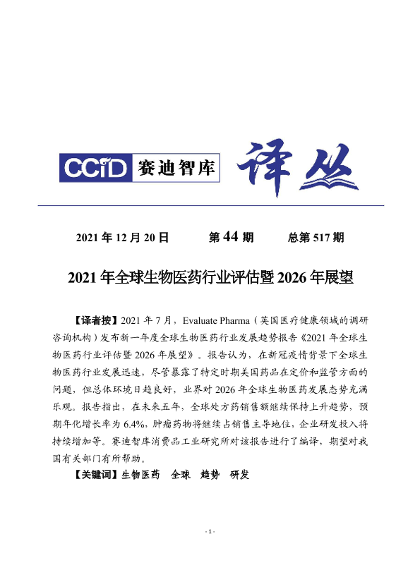 【Evaluate Pharma】【202107】2021年全球生物医药行业评估暨2026年展望-24页