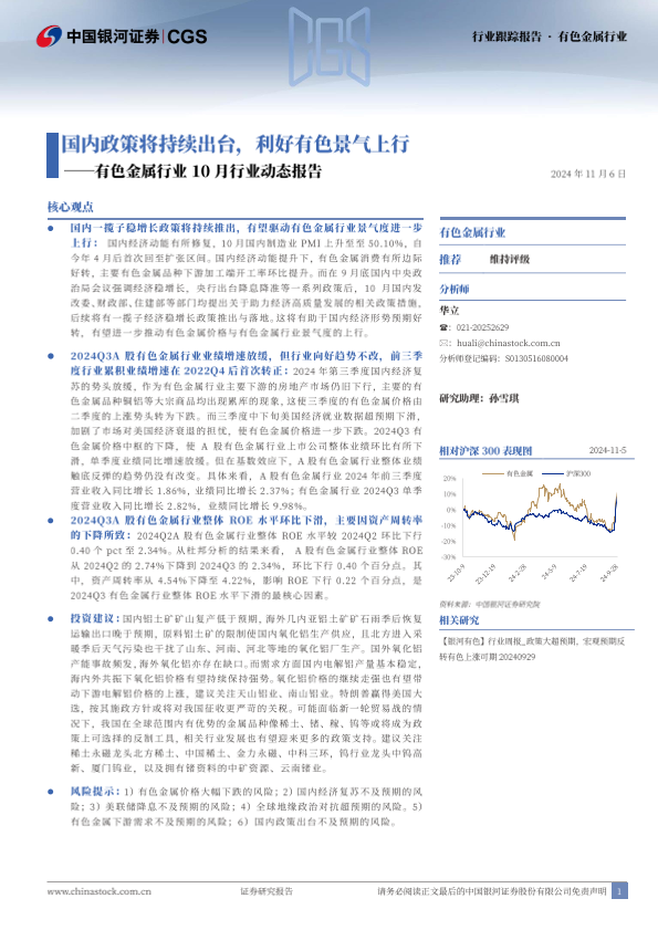 【银河证券】【20241106】有色金属行业10月行业动态报告:国内政策将持续出台,利好有色景气上行-25页