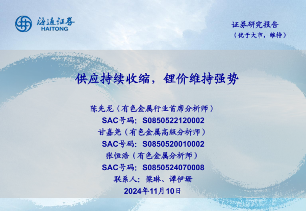 【海通证券】【20241110】有色金属行业:供应持续收缩,锂价维持强势-25页