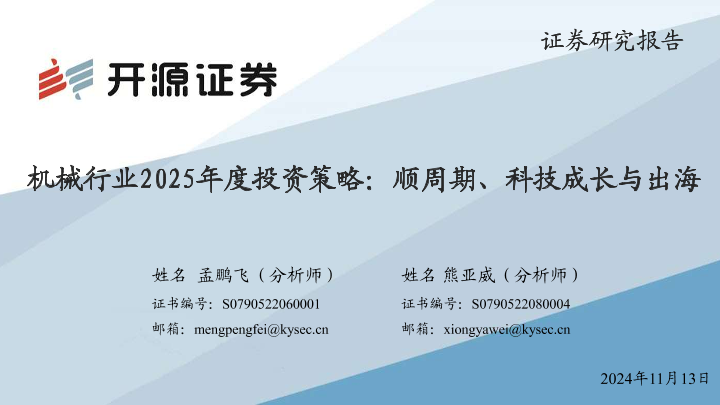 【开源证券】【20241113】机械行业2025年度投资策略:顺周期、科技成长与出海-64页