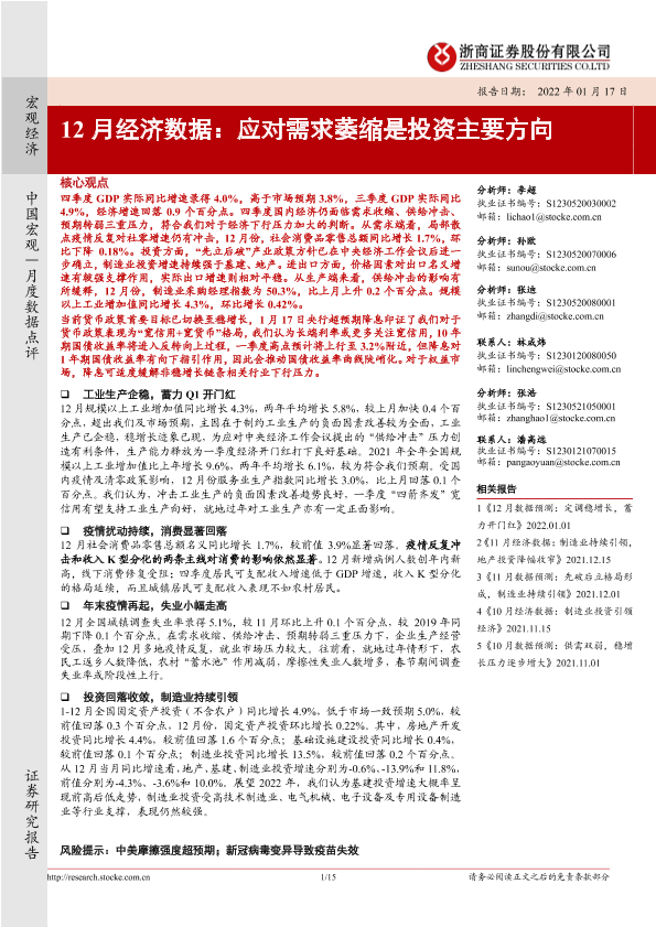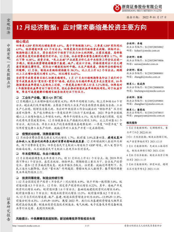 【浙商证券】【20220117】12月经济数据:应对需求萎缩是投资主要方向-15页