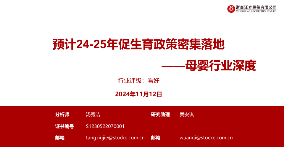【浙商证券】【20241112】母婴行业深度:预计24-25年促生育政策密集落地-28页