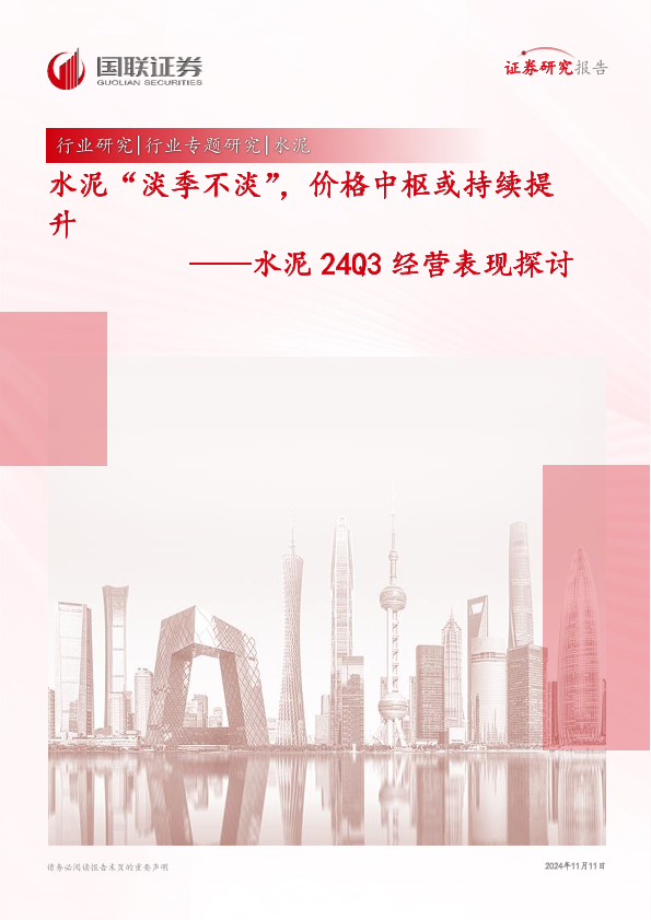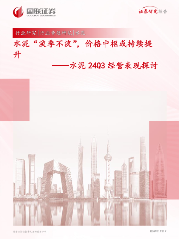 【国联证券】【20241111】水泥行业24Q3经营表现探讨:水泥“淡季不淡”,价格中枢或持续提升-17页