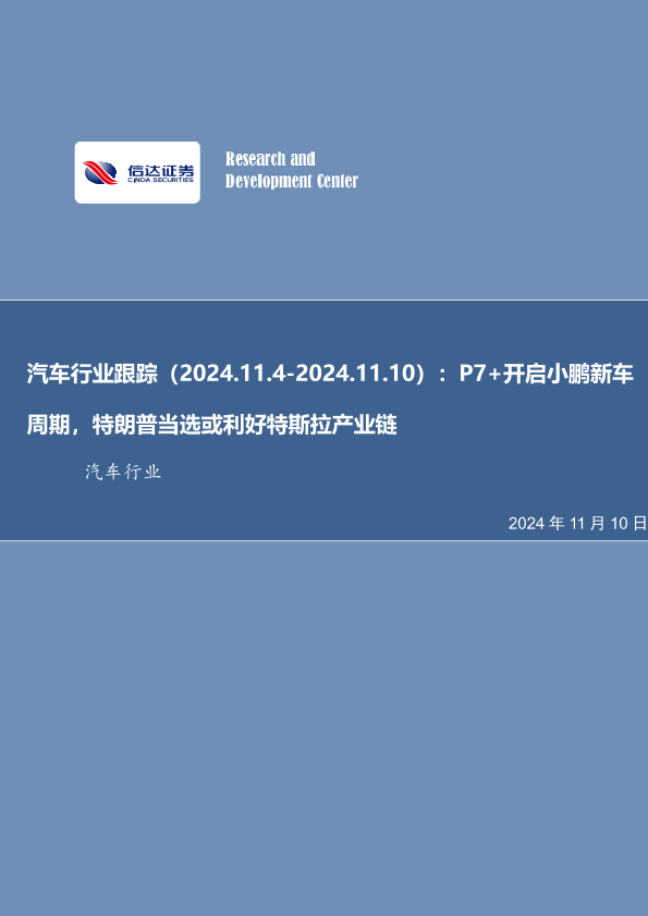 【信达证券】【20241110】汽车行业跟踪:P7+开启小鹏新车周期,特朗普当选或利好特斯拉产业链-21页