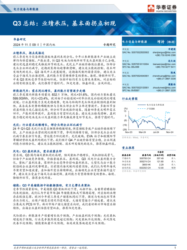 【华泰证券】【20241109】电力设备与新能源行业专题研究:Q3总结,业绩承压,基本面拐点初现-42页