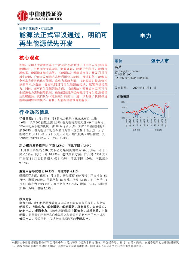 【中信建投证券】【20241111】电力行业:能源法正式审议通过,明确可再生能源优先开发-15页