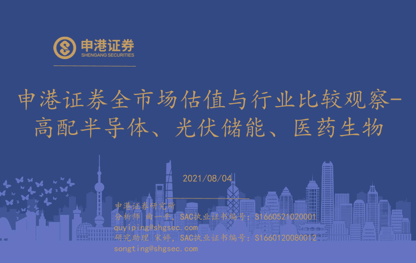 【申港证券】【20210804】全市场估值与行业比较观察:高配半导体、光伏储能、医药生物-26页