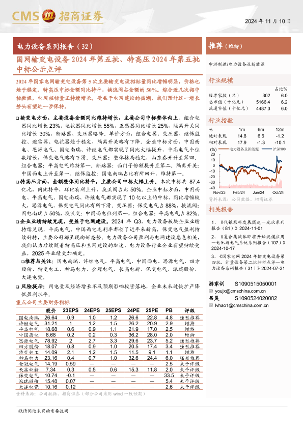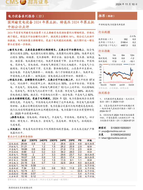 【海通证券】【20241110】电力设备行业系列报告(32):国网输变电设备2024年第五批特高压2024年第五批中标公示点评-15页