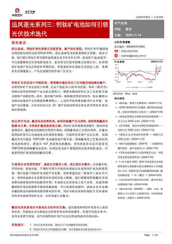【五矿证券】【20241114】电气设备行业追风逐光系列三:钙钛矿电池如何引领光伏技术迭代-20页