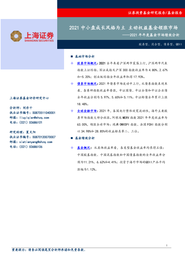 【上海证券】【20220119】2021年年度全市场基金绩效分析:2021中小盘成长风格为主,主动权益基金领涨市场-16页