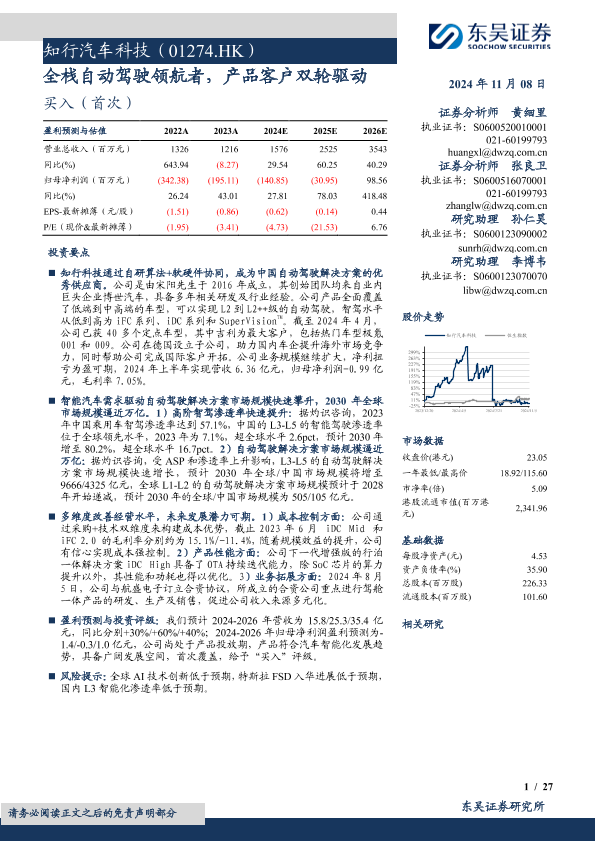 【东吴证券】【20241108】知行汽车科技(01274.HK)全栈自动驾驶领航者,产品客户双轮驱动-27页
