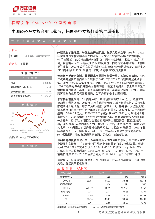 【方正证券】【20241112】祥源文旅(600576)中国轻资产文旅商业运营商,拓展低空文旅打造第二增长极-32页
