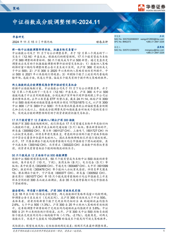 【华泰证券】【20241115】策略动态点评:中证指数成分股调整预测-2024.11-12页