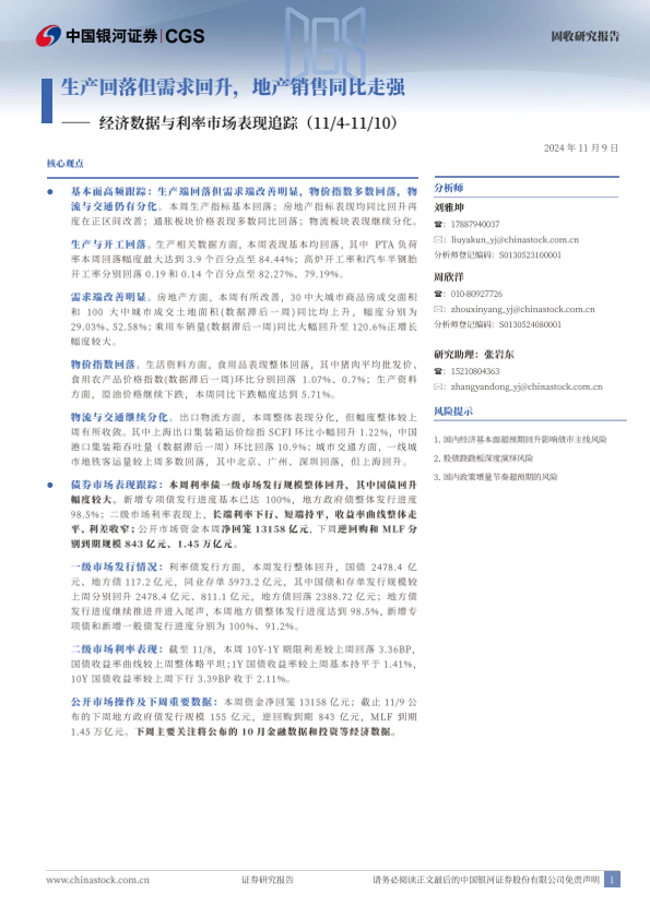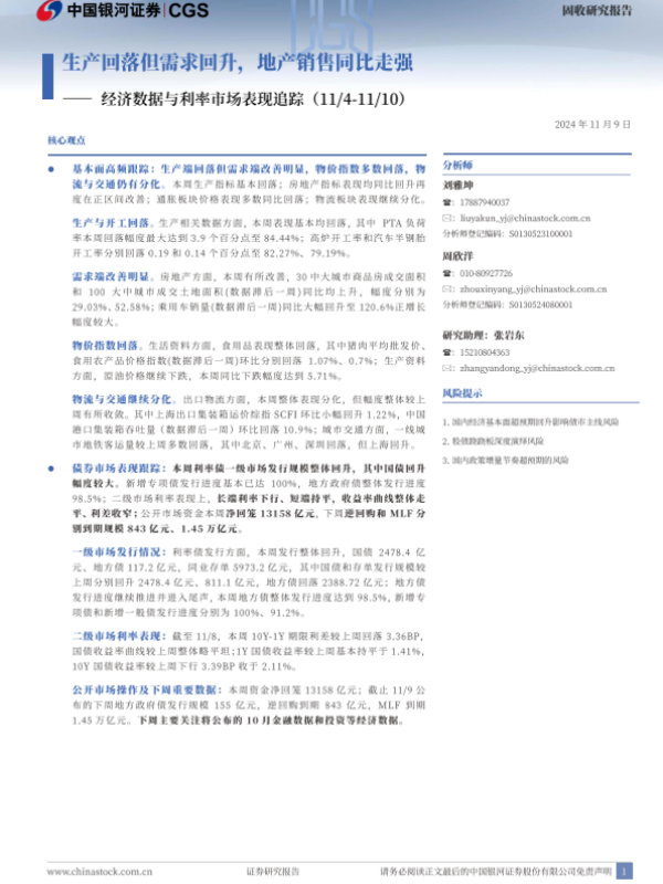 【银河证券】【20241109】经济数据与利率市场表现追踪:生产回落但需求回升,地产销售同比走强-12页