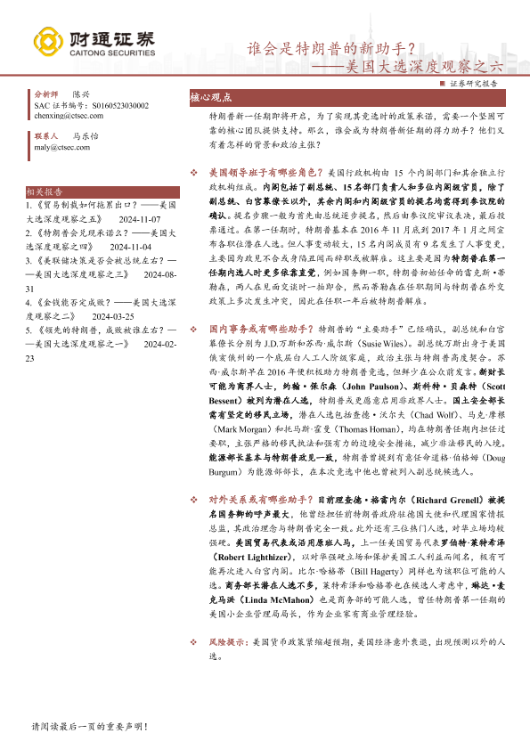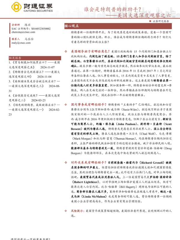【财通证券】【20241110】美国大选深度观察之六:谁会是特朗普的新助手?-13页