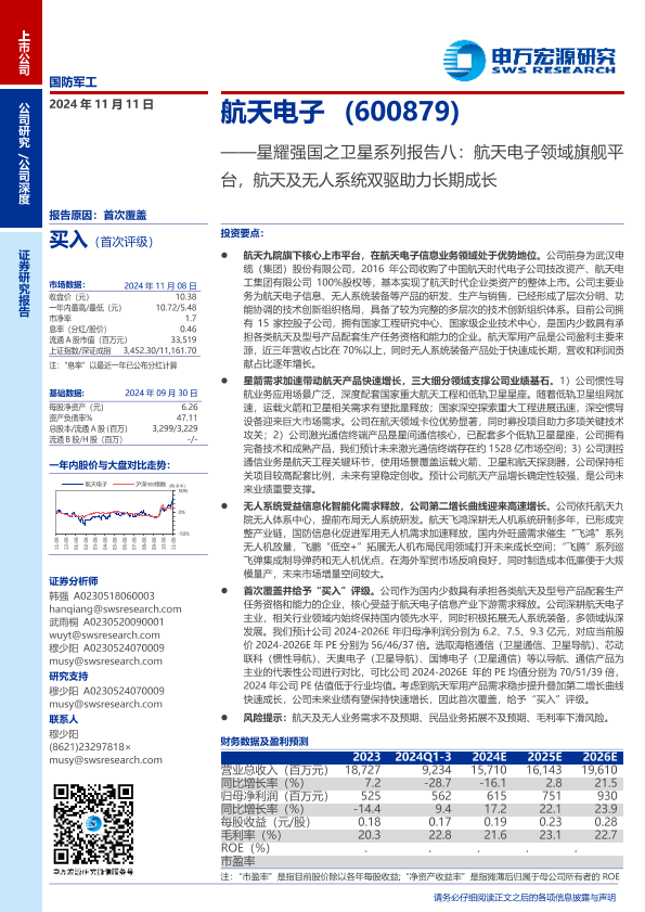 【申万宏源】【20241111】航天电子(600879)星耀强国之卫星系列报告八:航天电子领域旗舰平台,航天及无人系统双驱助力长期成长-44页