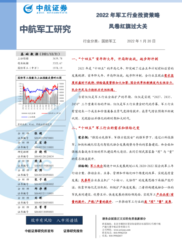 【中航证券】【20220120】2022年军工行业投资策略:风卷红旗过大关-124页