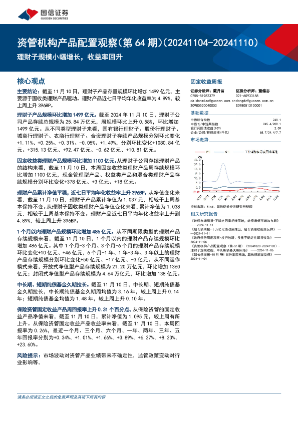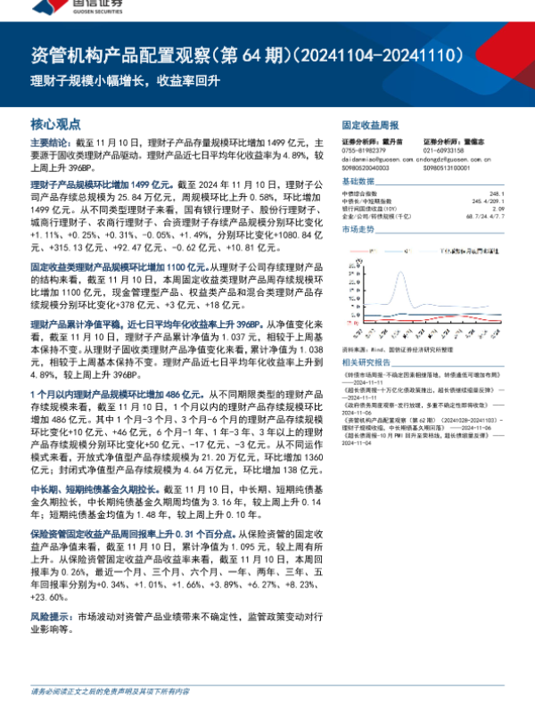 【国信证券】【20241113】资管机构产品配置观察(第64期):理财子规模小幅增长,收益率回升-15页