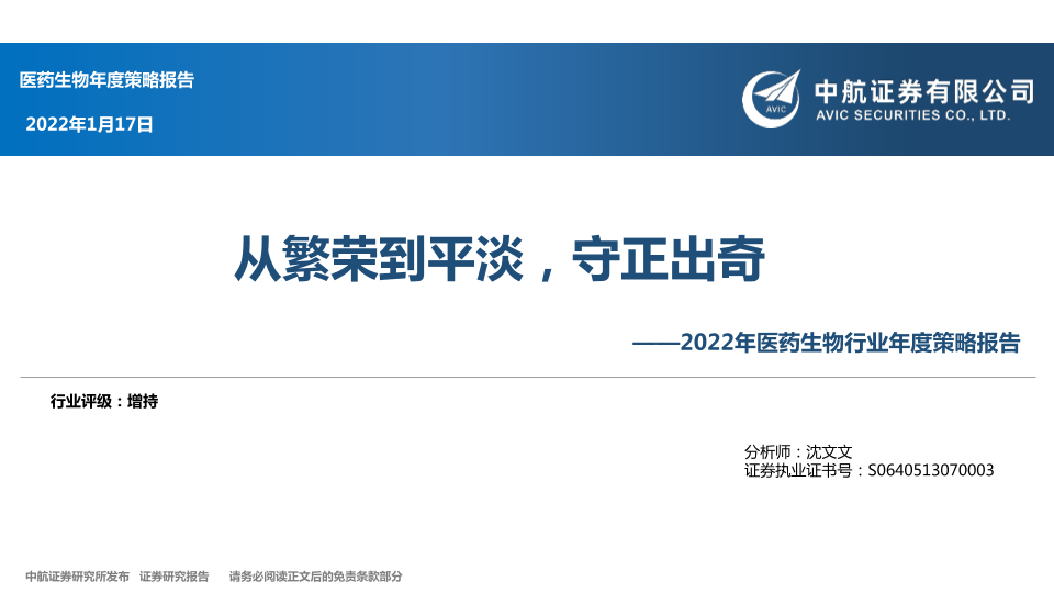 【中航证券】【20220117】2022年医药生物行业年度策略报告:从繁荣到平淡,守正出奇-88页