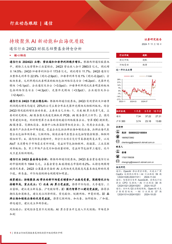 【西部证券】【20241110】通信行业24Q3财报总结暨基金持仓分析:持续聚焦AI新动能和出海优质股-13页