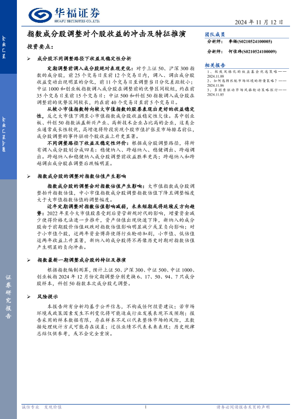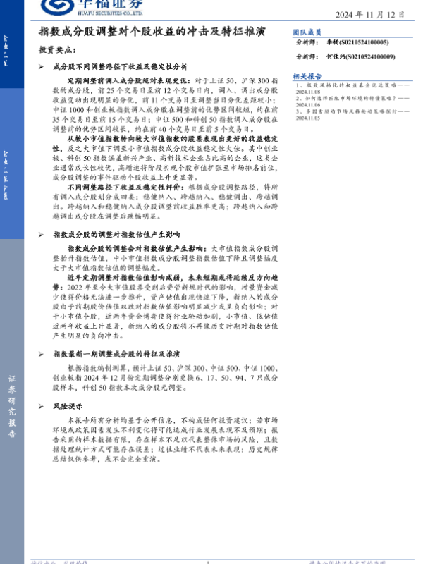 【华福证券】【20241112】金融工程专题:指数成分股调整对个股收益的冲击及特征推演-25页
