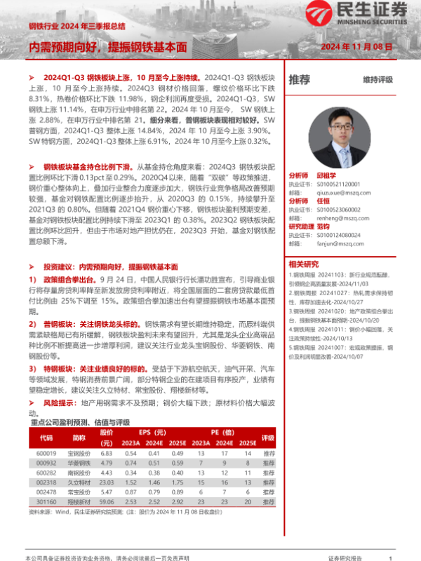 三季报 内需预期 基本面分析 证券研究报告 钢铁行业
