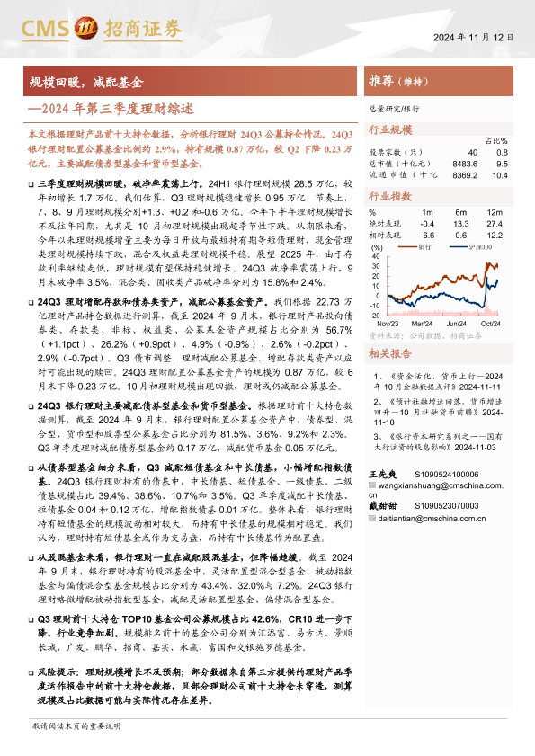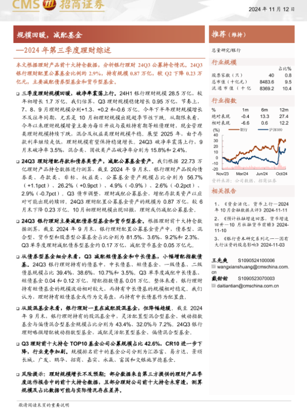 【海通证券】【20241112】银行业2024年第三季度理财综述:规模回暖,减配基金-25页
